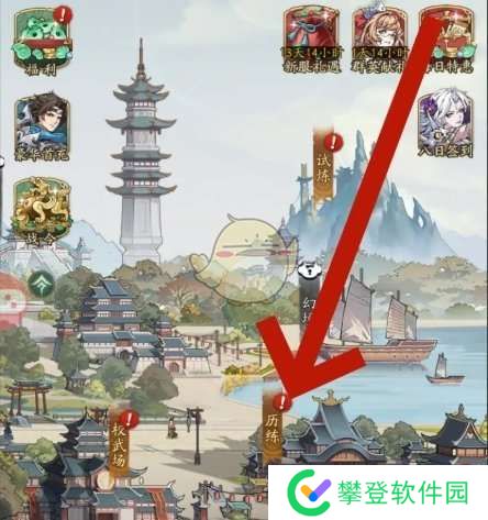 1、在游戏主页,点击下方的历练前往详情页;