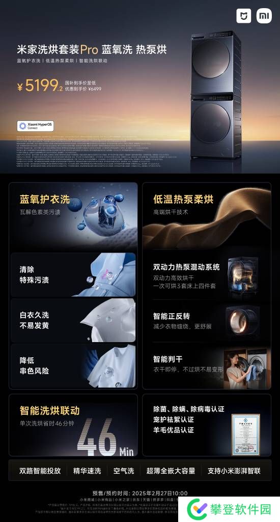 在今日举行的小米发布会上,米家洗烘套装Pro蓝氧洗 热泵烘正式发布,原价6499元,机器支持国补,实付到手价仅5199.2元,预售现已开启。