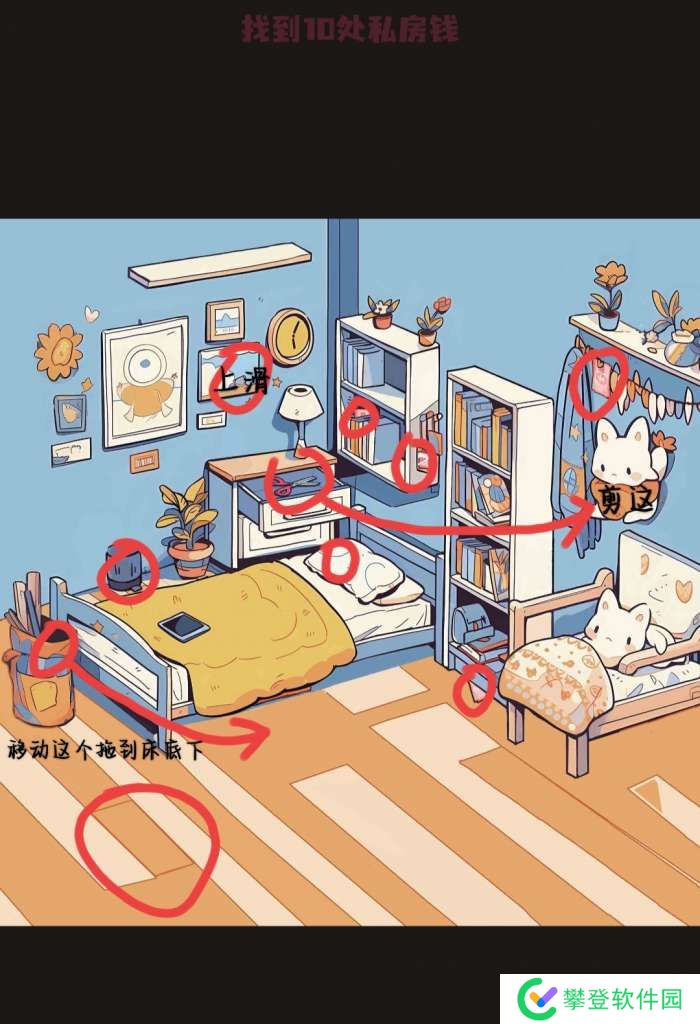 这一关需要在图中找到10处私房钱,大部分还是比较好找的,难点大家找不到的可以看看下图: