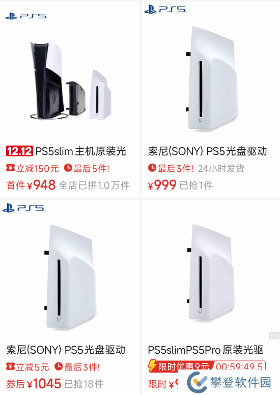 究其原因是索尼官方商城的PS5光驱很长一段时间内处于缺货状态,虽然有补过几次货,但数量少并未改变仍一“驱”难求的现状。如果去电商平台购买第三方商家的光驱,则要支付不少额外费用。以PDD为例,大部分二手光驱的售价在900-1050元间,全新原装的价格则提升至1200-1300元,比官方的759元贵了不少。