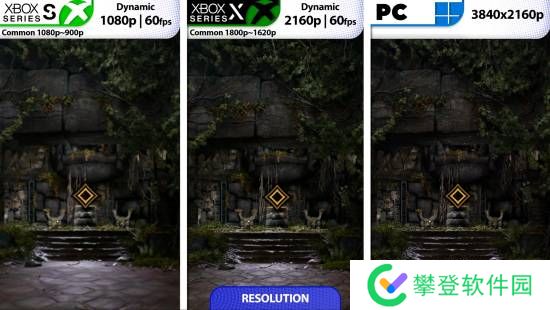 《夺宝奇兵:古老之圈》在Xbox Series X|S上均以60帧为目标,且均为动态分辨率,通常情况下与目标分辨率非常接近。