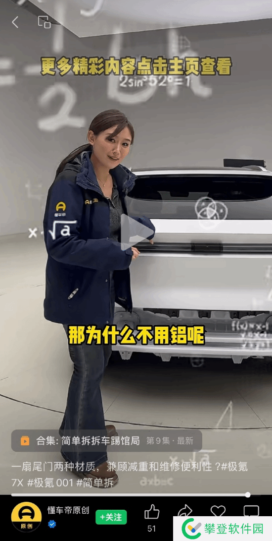 据了解,近日懂车帝在“简单拆”栏目里针对极氪7X进行了拆解。其中一女主播称极氪7X的尾门用了两种材料,上面为塑料,下面是金属,并引导称之所以用塑料,是为了减重、减少成本,最后她还抛出问题“为什么不用铝呢”来结束视频。