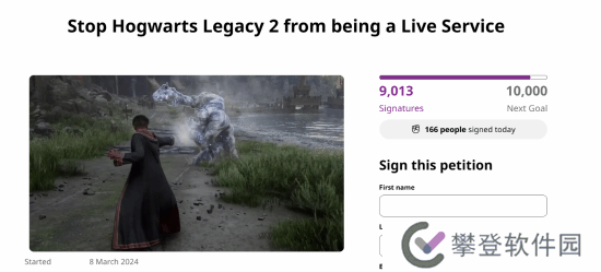今年3月份,有玩家曾在请愿网站Change.org里发起请愿,要求华纳不要将尚未公布的《霍格沃茨之遗2》制作成实时服务型游戏。截至发稿前,签署这份请愿书的玩家人数已经达到了9013人,即将突破一万人。