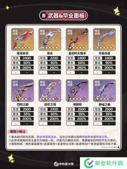 如果没有图里3把五星武器(若水、最初的大魔术、冬极白星)和精5烈阳之嗣,专武>1命