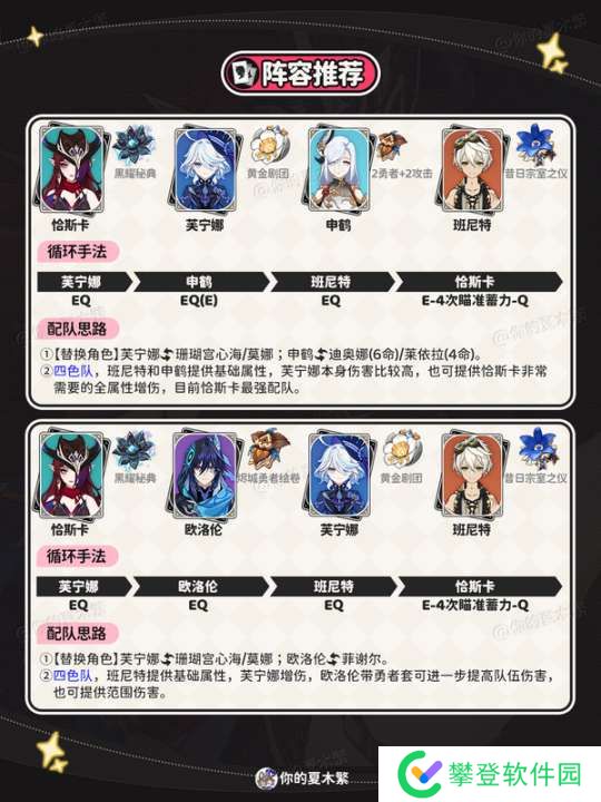 目前2位最佳搭档,芙宁娜和班尼特,也可以根据下面的优先级来配置队伍