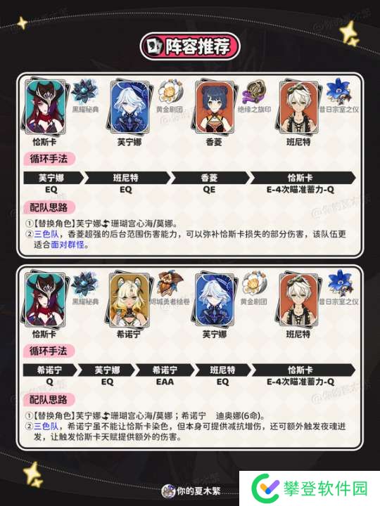 如果是0命芙宁娜,建议带上迪奥娜、希诺宁或者夏洛蒂,快速堆叠芙宁娜的增伤buff