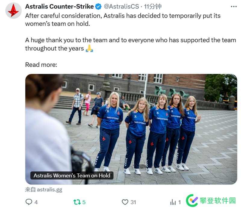 在今天下午Astralis官宣将暂时搁置旗下女子阵容。这也是继