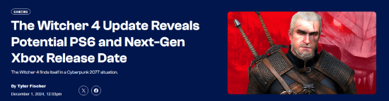 CD Projekt Red最近发布的关于《巫师4》的更新,外媒comicbook认为,其中的一些信息可能揭示了该游戏在PS6和次世代Xbox上的潜在发售日期。