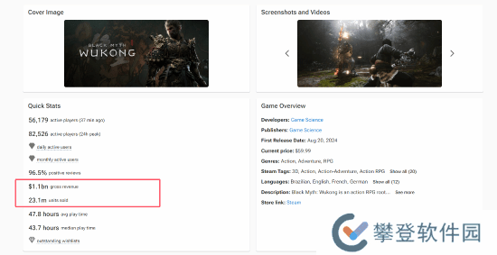 值得一提的是,2200万仅为Steam平台的单一销量,如果加上《黑神话:悟空》在其他平台的销量,其总销量将会更高。在《黑神话》荣获2024年金摇杆“年度游戏大奖”当日(11月22日),本作的销量刚刚到达2230万份。也就是说《黑神话》在获奖后仅用一周的时间又卖出80万份!