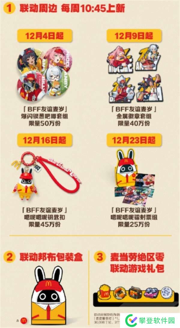 12月4日起,麦当劳丨绝区零联动开启,购买传奇绳匠充能餐即可获得联动周边和游戏礼包。周周上新,周周惊喜,嗯呢嗯呢!