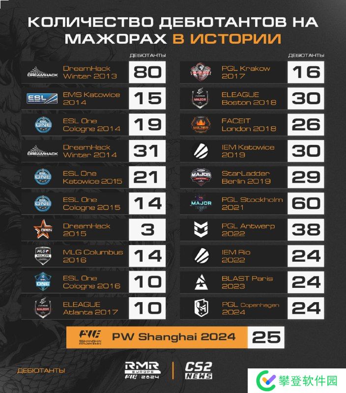 随着欧洲RMR赛事的结束,本次上海Major所有参赛队伍已经确定。在24支脱颖而出的队伍中,总共有25名选手是职业生涯首次参加Major赛事。