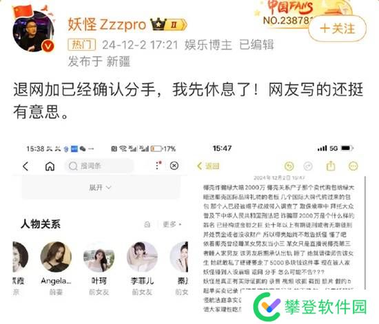 12月1日晚,知名博主“妖怪”连线叶珂十年闺蜜证实两人确已分手。知名博主称已证实叶珂黄晓明分手, 12月2日,妖怪发文称“退网加已经确认分手”。此外,叶珂的闺蜜还爆料叶珂为独自“产检”买热搜,实则是提前一个月策划的。